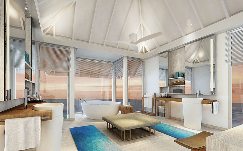 The luxurious Water Villas are suspended on stilts over the water, offering incredible views of the Indian Ocean and direct access to the lagoon. With a spacious bedroom and king sized bed plus sofa bed, an over sized bathroom with a large bath tub and separate shower, plus a day bed and sun beds on the sun deck, the Water Villas make for the perfect romantic Maldives getaway.
