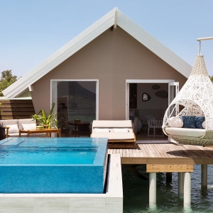 Enjoy sensational views over the lagoon from your spacious, west-facing Beach Pool Villa. Light sandy tones bring the natural beauty of island living inside, while a private terrace unfolds into a luxurious living space outdoors. All guestrooms offer en suite bathrooms that open onto a private garden, along with a separate bath. Relax in the privacy of your secluded garden with its sunken plunge pool, wooden deck, sun loungers and invigorating.