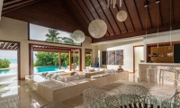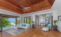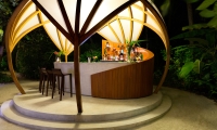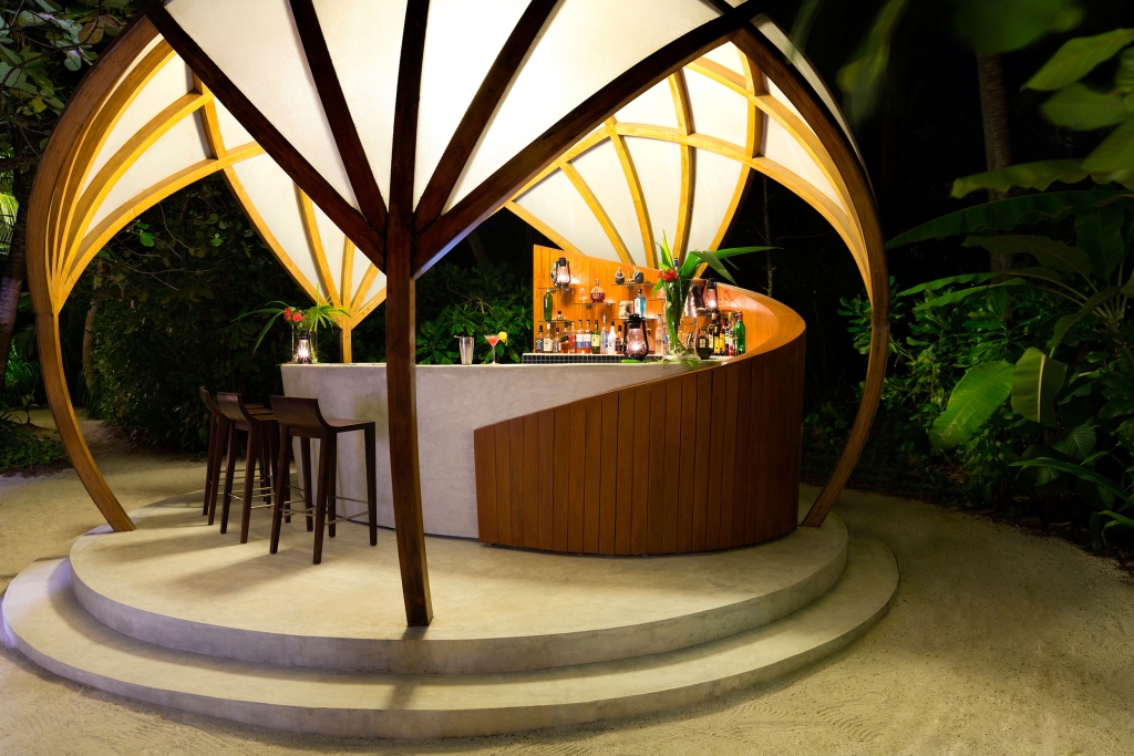 Inside, flow with the island breeze through spacious rooms —two bedrooms, sunken living room, dining room and cocktail bar—where cool hues offer respite from the sun’s rays. When night falls, get intimate. Flirt with the stars through your telescope, or envelop yourself in the pavilion’s sensual seclusion.