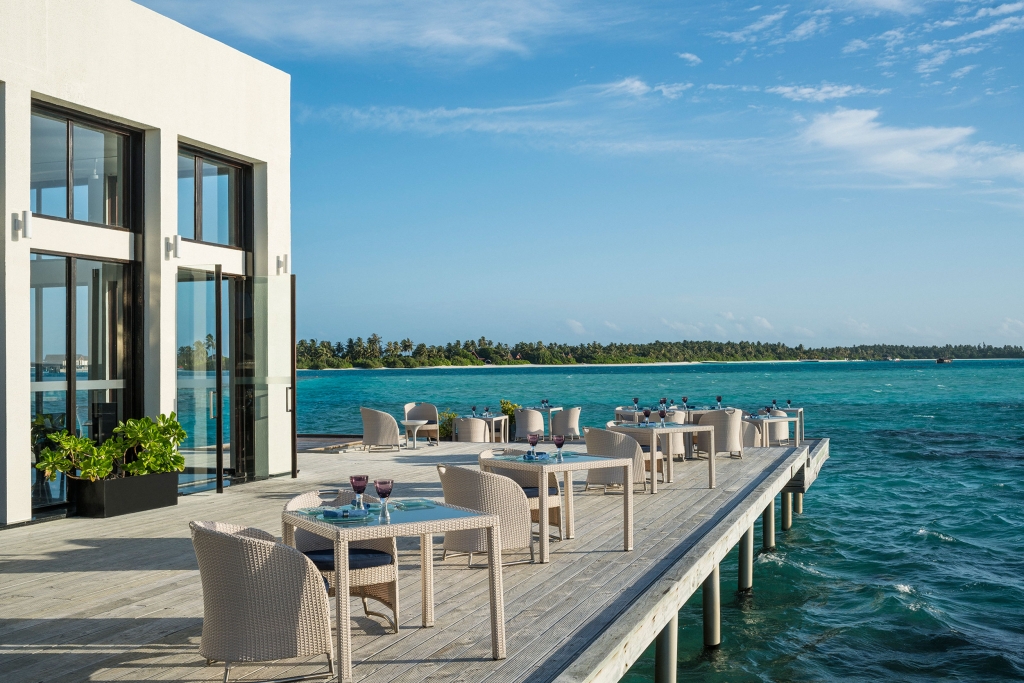 Exclusive overwater dining accessible only by boat, Edge focuses on fresh local seafood, including only local Maldivian reef fish, highlighted with modern techniques.