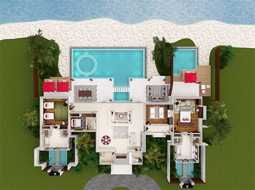 Get away and come together in a private paradise for the whole family. Kids rollick in sunny day play on your own beach. Grown-ups enjoy lounging and libations or a hard-earned massage in the villa’s private treatment room. Two private pools provide for both parental privacy and serious splashing.