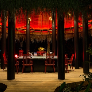 Climb into our tree house, Nest, for an unforgettable dining high. Navigate the jungle on a labyrinth of wooden walkways to your private perch in the tree tops. Chilled sculptures of sashimi arrive in a globe of ice. Avant-garde presentations by Thai, Chinese, Japanese and Indonesian chefs grace your table in one of the most spectacular restaurants in the Maldives.