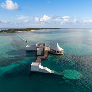 Huddled together offshore, a quintet of extraordinary villas forms a secluded overwater playground. Close to the action but far from the bustle, up to 14 adults and eight children can experience a holiday fantasyland amidst azure skies, turquoise sea. Here, the island comes alive for you. Grills sizzle at your private barbeque and movie under the stars. Boduberu drums beat.