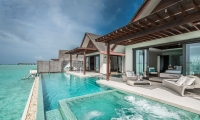 Explore the expansive in your own overwater Maldivian playground. Make friends with the fish beneath your villa. Bronze on the deck. Float to infinity. If the heat pierces, seek refuge under the shady arc of a floating daybed, or retreat to a living room full of high-tech toys. When the stars come out to play, join them in the outdoor Jacuzzi, cocktail in hand.