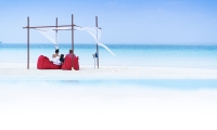 It’s peaceful privacy at this Maldives pool villa. Sway in your Dhoni-shaped swing and let your toes tease the water. Immerse yourself in a romantic, open-air rain shower. Linger over an al fresco dinner lit by the moon, or provide your own shine with the fibre optic lights of your private pool.