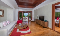 A private expanse for chilling and playing, the beach suite includes a living room by day that turns into king-sized comfort for two children. Unwind with al fresco bathing, with a soaking tub and the choice of indoor and outdoor rain showers cocooned by virgin palm fronds. In the evening, snuggle up with freshly popped popcorn and watch a movie in surround sound. The whole family can dig in to the Deli-In for licks of homemade ice cream, sweet treats and savoury snacks.