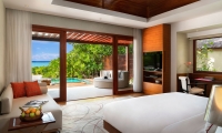 Juxtaposed with virgin surrounds your pool villa is Maldivian chic and timelessly modern, with bold splashes of colour, high tech entertainment and sultry surround sound. Indulge with a fridge full of treats and your butler at your beck and call.