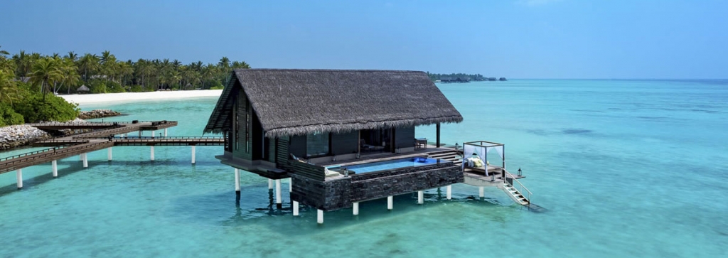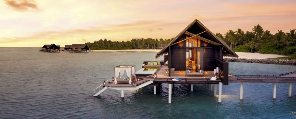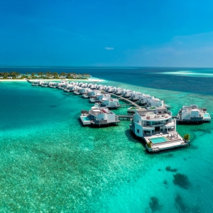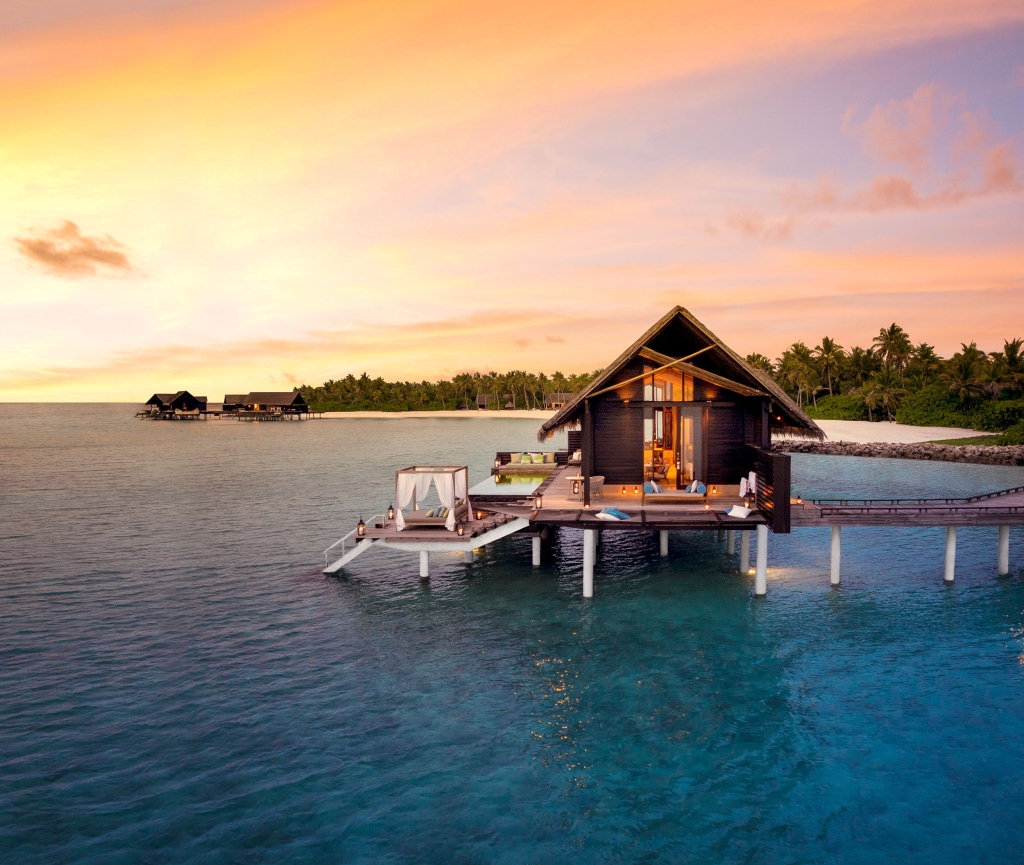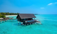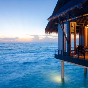 Two majestic Grand Water Villas, an experience unto itself, featuring an impressive infinity pool, private cabana, and over-water terrace for the ultimate Maldives holiday.