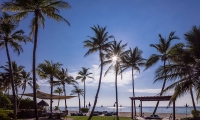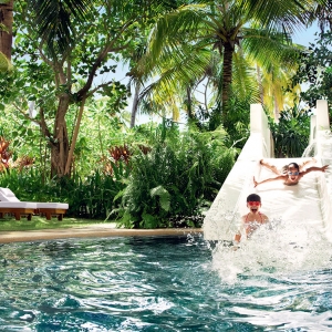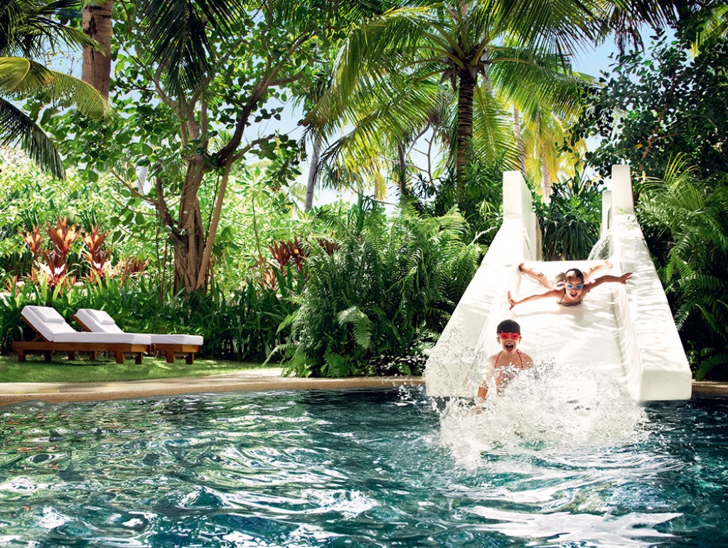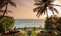 Located on the island’s west side, the villa offers indoor-outdoor living, with a master bedroom fitted with a king-size bed, large living and dining area and chic bathroom. The locally inspired architecture is imbued with subtle Balinese touches, for décor that is authentic and elegantly understated.