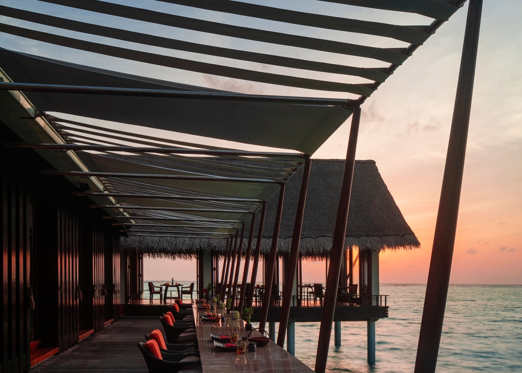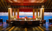 Rising from the ocean, Reethi is breezy and bright by day, serving an array of breakfast dishes on our spectacular over-water veranda. By night, it transforms into a dramatic food theatre. Here, the floor is arranged into three distinct dining experiences: Earth – for fine French fare, Fire – which whips up the full spectrum of Asian flavours with vibrant Indian, Maldivian, Sri Lankan, Chinese and Thai specialities, and Aqua – the section for seafood lovers, delivering authentic Italian flavours.