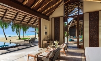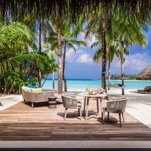 Step out to your outdoor wooden terrace and onto the sand, past your private sun loungers and refreshing outdoor shower, and onto your own beachfront. Your butler and villa valet will discreetly tend to your every need while you ease yourself into island life.