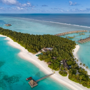 Water surrounds you in these six iconic over-water villas in the Maldives. Your stunning private infinity pool floats above the turquoise lagoon, with a deck where you can indulge in a spot of sunbathing.