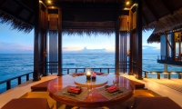 The 20-metre-long infinity pool, direct lagoon access and an abundance of living space infuses this stunning over-water villa with a distinctly calming energy, inviting you to unwind and fully enjoy each other’s company. You’ll be compelled to enjoy the villa’s creature comforts – a lazy afternoon sunbathing in the above-water netted hammocks, followed by a refreshing rinse in the outdoor shower. This is Maldives luxury resort living at its best.