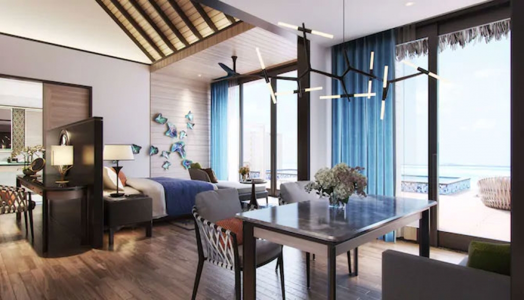 This overwater villa helps you embrace island life with stunning views, a private outdoor deck, and easy access to the pristine ocean waters. Sunbathe in a lounge chair next to the infinity pool as you wait for room service to deliver a refreshing cocktail, or enjoy a break from the sun while tuning in to your favorite show on the IPTV.