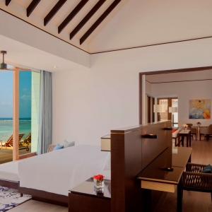 Savor your coffee while lounging on the sun deck in this villa. Outfitted in a contemporary design, this choice provides stunning views of the Indian Ocean, unobstructed access to the beach, and a private pool. When you’re ready to visit one of the resort’s restaurants, freshen up in the bathroom, which features a bathtub, a rain shower, and a twin vanity counter. Other standard amenities include an IPTV, a sofa, a daybed, a vanity kit, IDD phones, and outdoor lounge chairs.