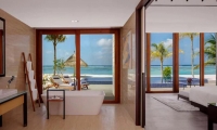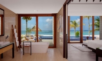 Make the most of your island getaway in this beachfront suite, which offers stunning ocean views, a private infinity pool, and convenient beach access. Your group will appreciate the privacy afforded by three separate bedrooms, and twin vanity counters provide extra space for getting ready. All standard amenities, like a spacious outdoor deck with lounge chairs, are included.