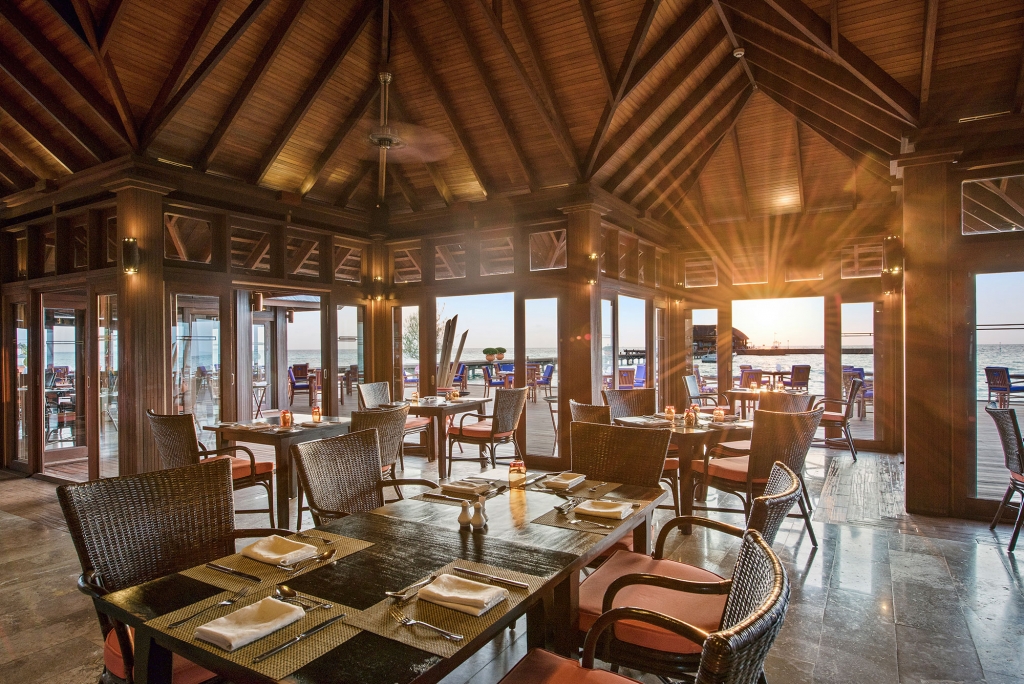 As well as buffet-style dining, this overwater eatery showcases live cooking stations every night of the week. Watch as our chefs create dishes from around the world right in front of your eyes, before taking a seat indoors or out on the expansive terrace.