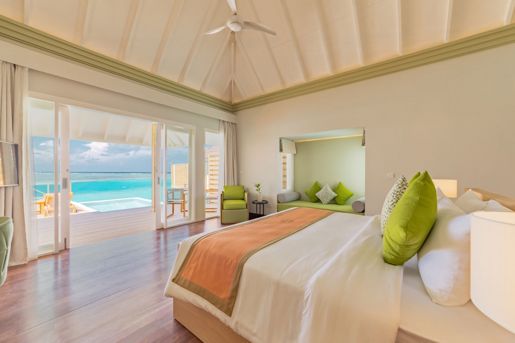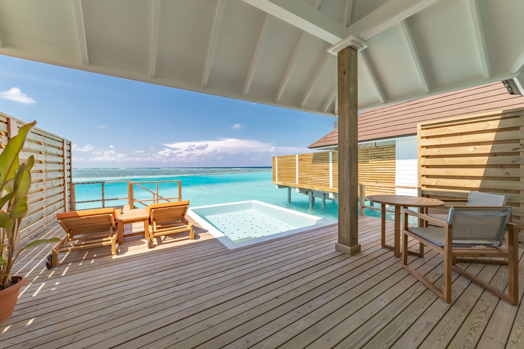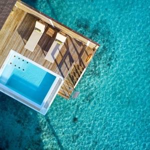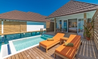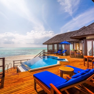 These overwater abodes allow you to unwind in total privacy from their spacious sun decks and sunrise-view jacuzzis. A separate living room offers plenty of space for indoor relaxation, and luxurious bathrooms are flooded with natural light. A great option for couples looking for their own place in paradise.