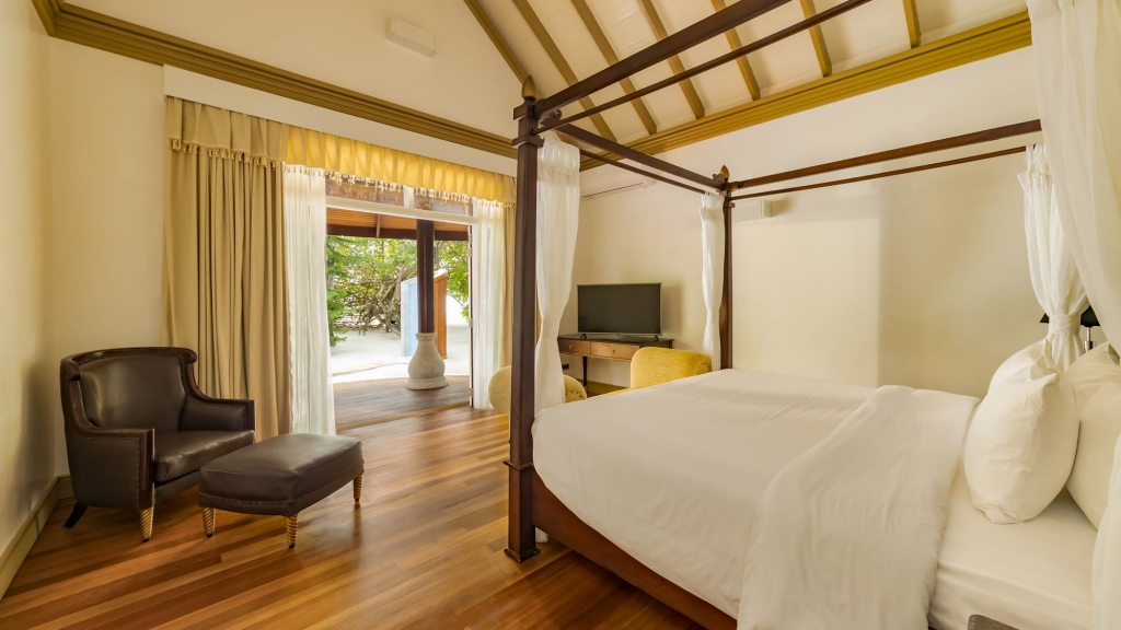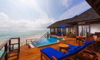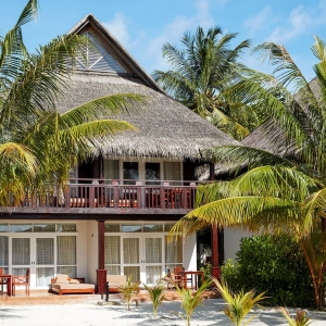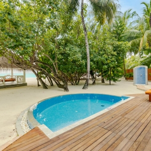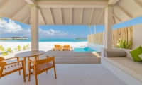 Immersive vegetation welcomes a relaxing Maldivian beach swing overlooking the lagoon. The suite features two king-sized bedrooms with a direct step off to the beach and generously spacious outdoor bathrooms. Living areas lead to a beachfront veranda with sun loungers and a plunge pool.
