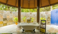 Set right on the beach, these villas boast private pools and expansive outdoor lounges with a day sofa, dining table and sun loungers. Inside, a king size bedroom with a large alcoved daybed leads to an open-air bathroom with a spectacular rain shower.