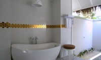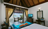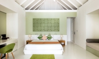 These contemporarily designed villas offer the perfect mix of indoor / outdoor living with a spacious deck overlooking the lagoon, complete with dining table and chairs, loungers and an oversized daybed. Spacious interiors offer a king size bed, alcoved seating area and a bathroom with large tub and separate walk-in shower.