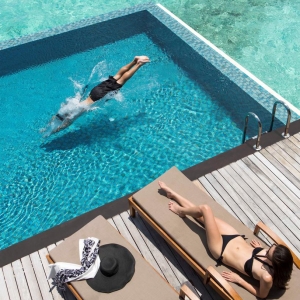 Immerse yourself in the beauty of the Maldives and the wonderful freedom of space in this expansive over-the-water villa. Step out onto the verandah, where you can relax by your private pool or dine while gazing upon the ocean and sunsets. A suitable haven for couples or families with older children, featuring an additional bedroom with twin beds.