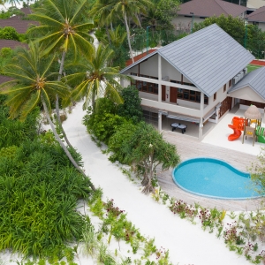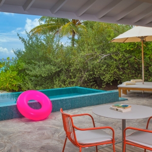 221 square meter flagship villa with the best access to uninterrupted ocean view and our house reef. Your neighbors are the abundant rays, baby sharks and fish friends that call this atoll home.