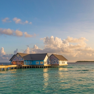 An adults-only, over-water-club perched just feet above the ocean. BERU BAR features a world-class cocktail program which highlights luxurious fresh tropical juices and unique spirits, and crave-able bar snacks like tamarin-coconut prawns and banana blossom fish and chips. A cozy space to watch the sunset perfectly setting the stage for a daily sunset ritual. Local DJs spin irresistible Maldivian inspired-beats, drawing everyone to the glass bottomed dance floor to move with the waves and sea creatures illuminated below.