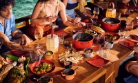 An authentic Maldivian Restaurant, GUDUGUDA features traditional celebratory Maldivian food. Dining low to the floor on cushions indoors and out, surrounded by rustic Maldivian furniture and decorations, guests are enveloped in warm, authentic hospitality that can normally only be found in domestic Maldivian spaces.