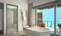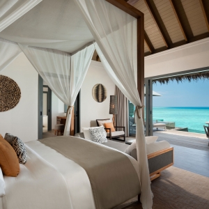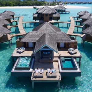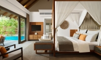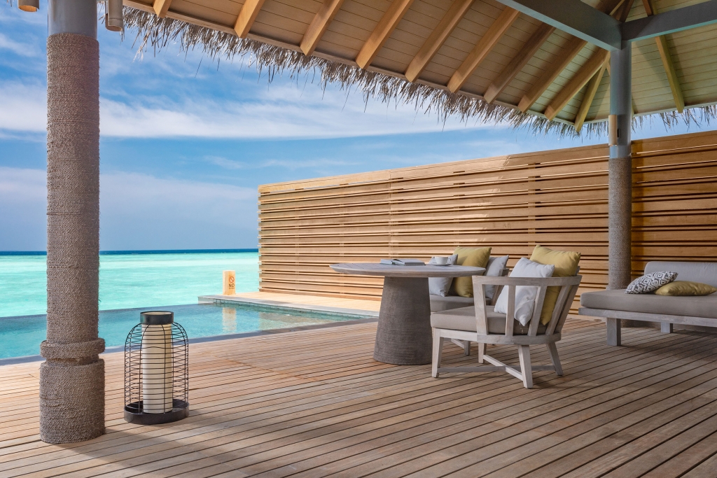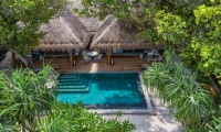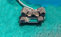 A tranquil sanctuary stilts above the emerald waters, the Over Water Pool Villas feature the same exclusive design as the Over Water Villas enhanced with a spacious deck with a day bed, sun loungers and a private infinity pool.
