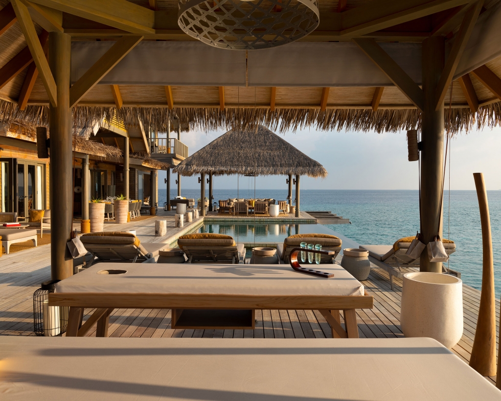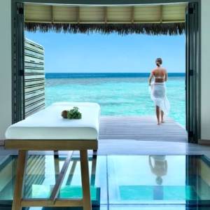 Find inner serenity with expert therapists at the luxurious overwater spa resort, featuring four couple’s treatment rooms with ocean views, eight single treatment rooms, a nail salon, spa boutique, and outdoor relaxation area.