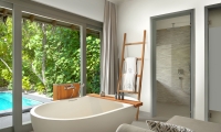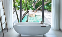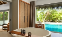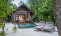 Surrounded by swaying coconut trees and lush foliage with direct beach access and private terrace, Beach Villa with Plunge Pool features a newly added open-air Jacuzzi designed for couples seeking an intimate relaxation