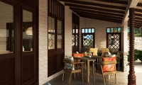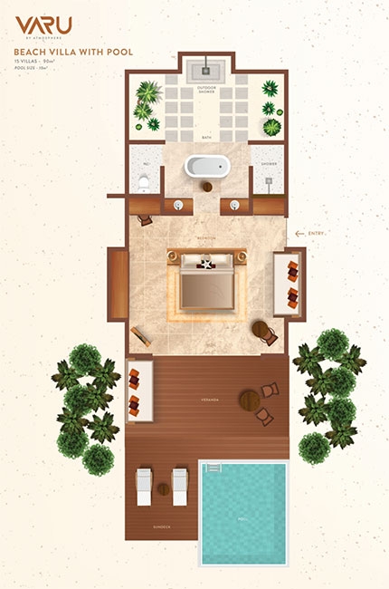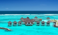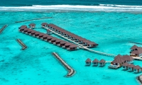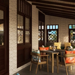 An elegant palette of cream, brown and cerulean highlights the atmosphere of airy, understated luxury. A huge glass sliding door brings in the natural light. Step out to the spacious veranda and soak in the morning sunshine. Relax on the inviting rattan and hardwood sunbeds. The water villas come with the option of a 10-square-meter pool to enjoy a cool dip in your private infinity pool.