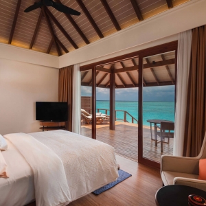 Wake up to gorgeous ocean views. Step into the crystal-clear turquoise lagoon for a swim. Slip into a restful sleep as your senses are soothed by the sound of gentle waves lapping the stilts of your aquatic home. Live close to nature in our tranquil water villas. with a vaulted ceiling and a huge glass sliding door that brings in the natural light.