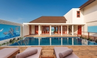 A large sliding glass door leads to a wooden veranda flanked by a lush tropical garden. Relax on the comfortable sun loungers and enjoy the ocean views. Or engage your brain cells and have some fun with a beautiful board game, thoughtfully placed on the side table. The master bedroom veranda comes with the option of a 10-square-meter private plunge pool with a wooden sundeck.