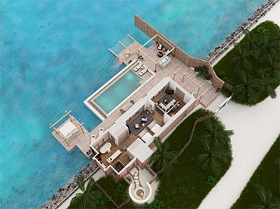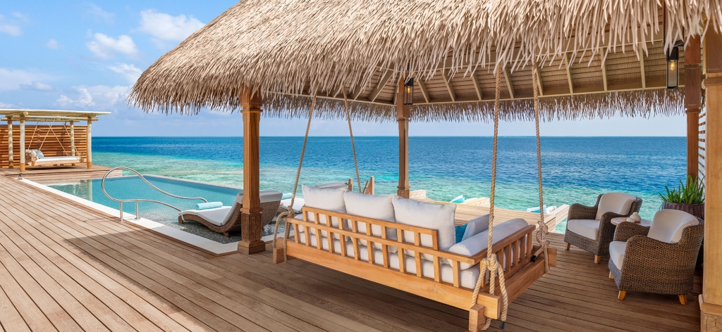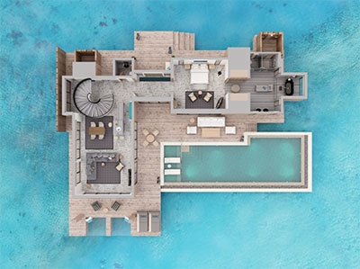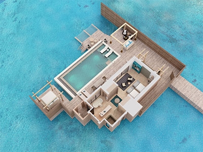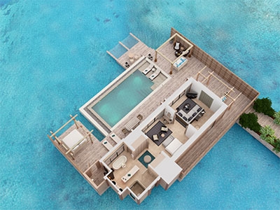 Discover indoor and outdoor island living. These villas feature an overwater terrace with a dining gazebo, overwater hammock, and infinity pool.