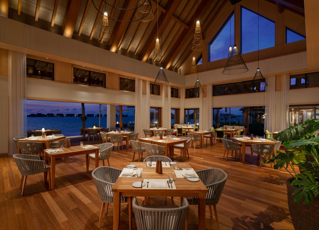 Over the turquoise lagoon serving its signature Peking duck roasted in the Maldives’ first classic woodfired oven. Diners are transported to the era of Shanghainese royalty by specialist Chef Addy and team with an ambience to match.