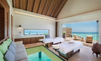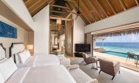 Embrace the ocean's beauty with floor-to-ceiling windows and sliding doors for glorious views over the sparkling ocean to the far horizon. Relax with two queen-sized, Waldorf Astoria beds and state-of-the-art audio-visual entertainment. The bathroom has a soaking tub and indoor and outdoor showers, while a glass floor in the dressing room reveals the tropical reef and fish below. Outside, swim in the pool or the ocean, dine in the pavilion or laze on the daybed or in the overwater hammock.
